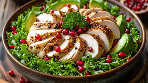 Салаты — это не просто гарнир или легкая закуска, это настоящий полет фантазии. Они могут быть простыми и быстрыми, изысканными и праздничными, сытными и легкими. А главное — салаты всегда помогают создать настроение. Сегодня я поделюсь с вами пятью рецептами, которые станут украшением вашего стола и вдохновят на кулинарные эксперименты. Готовьтесь, будет вкусно! Этот салат — настоящая симфония вкусов. Нежное куриное филе, кремовый авокадо, сладкий гранат и пикантная заправка — идеальное сочетание для праздничного ужина или семейного обеда...