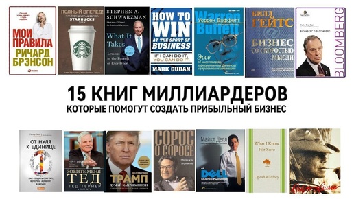 Джордж Сорос / Майкл Делл / Опра Уинфри / Ральф Лорен / Чарльз Шваб Делимся книгами из списка Forbes, в которых от первого лица можно узнать, как создавались миллиардные состояния. Ричард Брэнсон «Мои правила. Слушай, учись, смейся и будь лидером» (состояние $4,4 млрд) Практические уроки лидерства и создания бизнеса на личном опыте основателя...
