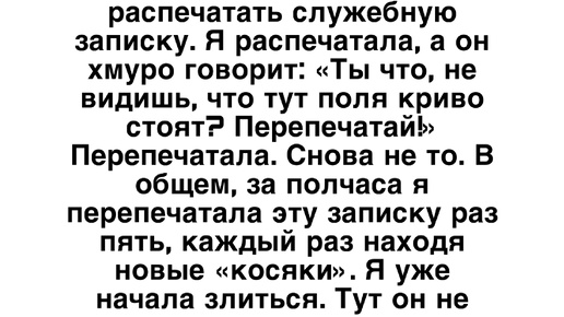 1. Служебная записка Муж попросил меня распечатать служебную записку. Я распечатала, а он хмуро говорит: «Ты что, не видишь, что тут поля криво стоят? Перепечатай!» Перепечатала. Снова не то. В общем, за полчаса я перепечатала эту записку раз пять, каждый раз находя новые «косяки». Я уже начала злиться. Тут он не выдерживает и рыдает от смеха: «Дорогая, я просто шучу! Записка идеальная! Просто сегодня 1-е апреля!» А я уже была готова прибить его этим самым принтером. 2. Суровая реальность Стою в очереди в супермаркете...