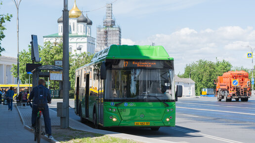 Интересно было бы прокатиться по улицам Пскова на трамвае, но этот вид транспорта в городе существовал лишь с начала 20 века до начала Великой Отечественной войны. После Победы его не восстановили, но задумали пустить троллейбус. Однако, этого тоже не было сделано, поэтому сейчас в Пскове есть только автобус. Впрочем, 200-тысячному городу вполне хватает одного вида транспорта. Основу автобусного парка города составляют достаточно современные низкопольные ЛиАЗы среднего размера и белорусские МАЗы, среди которых преобладают большие автобусы с "гармошкой"...