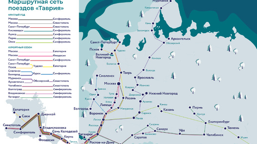 Крымский перевозчик «Гранд Сервис Экспресс» (ГСЭ) опубликовал обновлённую карту маршрутной сети поездов «Таврия» в Крым на лето 2025 года. В этом сезоне туристов, желающих отдохнуть на крымском побережье, ожидает 21 поезд дальнего следования и три группы беспересадочных вагонов, соединяющие полуостров с разными уголками России. Самая насыщенная маршрутная сеть традиционно — у столицы. Из Москвы в Крым этим летом будут ходить восемь поездов. Пять из них — ежедневные, включая фирменный двухэтажный поезд №27/28 «Таврия Экспресс», курсирующий ежедневно до Симферополя...