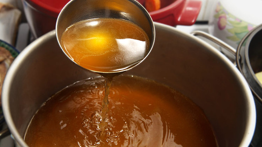 Жёлтый бульон служит основой всех прозрачных супов с гарнирами как русских, так и французских, как-то: суп с клецками, лапша, суп с фрикаделями, суп руаяль, жульен и проч...