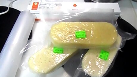Открытая головка сыра долго не хранится. А головки бывают 2-3 кг. И вот к приезду детей я открыла очередную головку сыра, который сварила ещё в конце февраля. 1 марта я его упаковала в термо пакет и отправила на созревание. Этот сыр был больше 2 кг весом. Я отрезала часть, а остальное нужно убрать на сохранение...