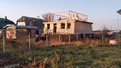 Мы не стали делать погреб под домом. Но огород сажаем. В доме пока не живем. Муж смотрит за домом. Картошку храним в погребе, в сарае рядом с квартирой. Часть моего огорода с видом на дом соседа.