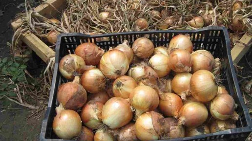 • Просушить лук перед хранением. Если на улице стоит тёплая, солнечная погода, лук можно разложить для просушки прямо на земле. Если погодные условия не позволяют, нужно убрать лук в хорошо проветриваемое место на чистую и сухую поверхность. Обычно овощ просушивают 2–3 недели, в течение этого времени луковицы нужно периодически переворачивать. • Подрезать корешки и укоротить стебли. Чтобы урожай лучше хранился и не терял влагу, ножницами нужно укоротить стебли до 3–4 см. • Провести сортировку...