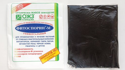 Вы можете удивиться. Вроде бы «Фитоспорин» - привычное средство, и развести его – не проблема. Вы можете прочитать на обратной стороне упаковки, как его разводить. Однако просто развести его мало, нужно ещё правильно с ним обращаться. В пасте есть палочка окультурена. Если развести пасту до того состояния, когда она начнёт работать, консервант станет не таким концентрированным и палочка «заработает». «Фитоспорин» не имеет аналогов. Его в последние годы выпускают с добавленными гуминовыми кислотами...