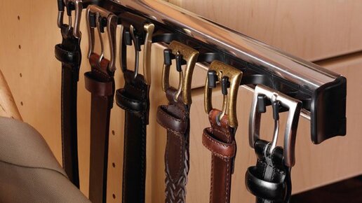 1. В свернутом виде в обычном выдвижном ящике. Но есть один нюанс: при таком способе даже на качественной экокоже могут появиться микротрещины =( 2. В ящике для мелочей. Там, где есть большое количество маленьких ячеек. Порядок в ящике и каждый ремень на своем месте. 3. Можно внутри шкафа повесить крючки или держатель на дверь...