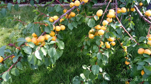 Долго я не решалась посадить абрикос. Весной 2016 года купила в питомнике два двухлетних саженца. Одновременно два - для перекрёстного опыления и хорошего урожая. Место посадки выбирать долго не пришлось. Саду уже двадцать лет и понятно, что деревья и кустарники это не мебель в квартире - не передвинешь. Да и в огороде всё засажено и всё впритык. Клумбы это святое.. и место осталось только на газоне. Скажу так - не очень, чтобы очень, но нам досталось, что осталось. На фото видно - два маленьких саженца у забора на газоне...