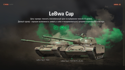 В последнее время как-то потерял мотивацию играть в танки. Просто в рандоме поднадоело, а играть ГК или укрепы не хватает мощности компа (чтобы играть комфортно) Ну и тут друзья подкинули идею поучаствовать в турнире от Левши. В этом месяце турниры на Т-62А и Т-44-100, катать нужно одному, без взвода Оба танка у меня есть, так что участвую хотя бы в одном из турниров. Можно и в двух, но сомневаюсь, что за 11 дней смогу накатать 200 боёв на 2 танках Чтобы поучаствовать, нужно сделать 3 шага Вот так выглядит соревновательная таблица...