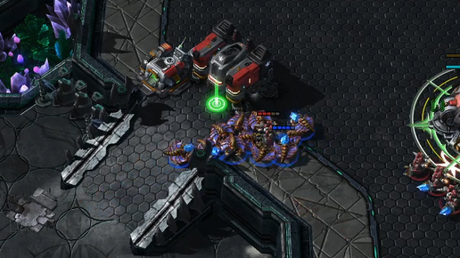 Всё про раннюю атаку рабочих+зерглингов на 1:25-2:00.
