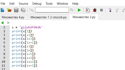 Cтроки Строка считывается со стандартного ввода функцией input(). Напомним, что для двух строк определена операция сложения (конкатенации), также определена операция умножения строки на число. Строка состоит из последовательности символов. Узнать количество символов (длину строки) можно при помощи функции len. Любой другой объект в Питоне можно перевести к строке, которая ему соответствует. Для этого нужно вызвать функцию str(), передав ей в качестве параметра объект, переводимый в строку. На самом деле каждая строка, с точки зрения Питона, — это объект класса str...