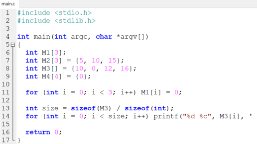 Инициализация массива в Си
