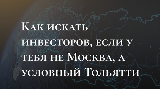 Как искать инвесторов, если у тебя не Москва, а условный Тольятти