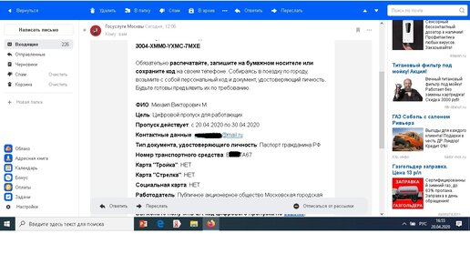 Всех приветствую на своем канале. Мы подавали 31 марта данные всех наших сотрудников для получения пропуска на передвижение. Наша компания является подрядчиком МГТС и свою работу мы остановить не можем. Пропуск мы ждали к пятнадцатому числу, но он так и не пришел. Пришлось самому забивать данные на сайте. Ничего там сложного и страшного не оказалось. Забил все данные и мне пришел на почту электронный пропуск с QR кодом. Сегодня утром мне пришел электронный пропуск автоматически. Меня это письмо очень удивило, потому что я ничего не заказывал...
