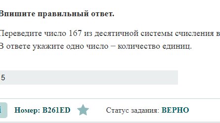 Переведите число 167 из десятичной системы счисления в двоичную систему счисления. Сколько единиц содержит полученное число? В ответе укажите одно число –– количество единиц. ЧТО НУЖНО ЗАПОМНИТЬ? Правила перевода из десятичной системы счисления в двоичную С помощью деления на два. 1. Последовательно выполнять деление исходного целого десятичного числа и получаемых целых частных на 2. 2. Записать полученные остатки в обратной последовательности. Пример: Переведем число 105 из десятичной системы счисления в двоичную: 105/2=52 (ост...
