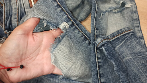 Первым шагом нас ждет кропотливая медитативная работа - распарываем швы с внутренней части бедра...