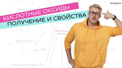 Покорители химии, в этой статье мы продолжим изучение оксидов! Рассмотрим получение и химические свойства кислотных оксидов. В конце вас будет ждать удобная схема со всеми взаимодействиями. Приятного прочтения! 1. Окисление неметаллов кислородом, продукт может зависеть от соотношения реагентов и температуры: например, в реакции углерода с кислородом может получиться, как СО2, так и СО; 2. Вытеснение из солей более сильной кислотой: классическим примером является реакция карбоната натрия с соляной...