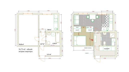 Недавно ко мне обратилась молодая семья. Они купили свою первую квартиру в новостройке и хотели создать в ней уютное пространство. Для них было крайне важно разделить зону для отдыха и кухни по отдельным комнатам. Квартира площадью 36,75 м2 с удивительно неровными стенами, что добавляло определенные сложности и большим нерациональным количеством дверей. Передо мной стояла задача разместить в однокомнатной квартире отдельную спальную зону, визуально сделав из одной комнаты две, грамотно оформить зону...