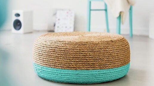 Оригинальный пуфик с нишей для хранения из покрышки своими руками
