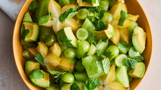 Познакомьтесь с летним фруктовым салатом, который навсегда изменит ваше представление о медовой росе. Да, действительно! Здесь кубики прохладной, сочной дыни сочетаются со сладким зеленым виноградом, сливочным авокадо, фруктами и свежей мятой для легкого фруктового салата, который выглядит и имеет потрясающий вкус. Вы захотите повторить этот рецепт все лето. Покупка тропических фруктов . Это тропический фрукт в форме звезды (отсюда и название), с желто-зеленым оттенком и мягким кисло-сладким вкусом...