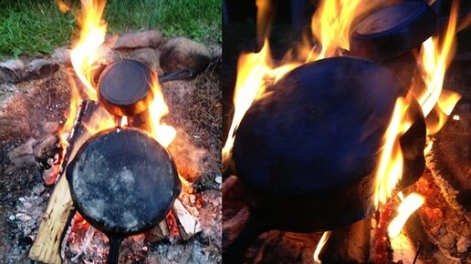 В предыдущей статье я рассказывал о «чудо-щетке», которая, якобы, очищает от нагара сковороды и казаны, причем легко и до блеска. Это оказалось далеко не так, и я обещал рассказать о более эффективном способе это сделать, причем бесплатно и без усилий. Правда, тут нужно соблюсти два условия. Первое – сковородка должна быть из чугуна (определить можно при помощи магнита – магнитится – чугун), и второе – у вас должна быть возможность развести костер. Да, метод заключается в выжигании нагара. Просто разводим костер, предварительно убедившись, что до домов и хозпостроек далеко...
