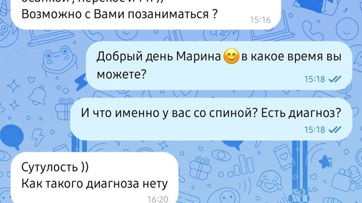 Как избавиться от сутулости и начать кайфовать от своей осанки В статье-кейсе привожу алгоритм как избавиться от сутулости и получить красивую осанку за 2 тренировки в неделю. Дано : В январе 2024 года ко мне обратилась Марина с запросом "Избавиться от сутулости и поработать с перекосами в теле" В чем затык: Марина ходила регулярно на фитнес- групповые тренировки. И занималась силовыми тренировками персонально с тренером. Тело очень спортивное, сухое, но при таком активном образе жизни оставалась сильная сутулость ...