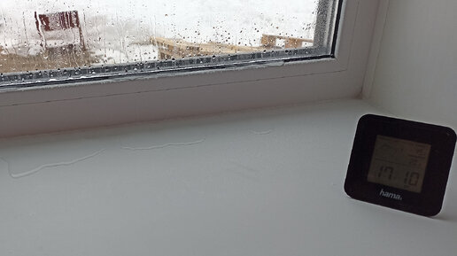 Помните я упоминал как мы боролись и до сих пор боремся с повышенной влажностью. Так вот. Как только въехали, запах сырости не покидал, было достаточно прохладно. Электро котел гоняли сначала на 45 градусов, круглосуточно работали 2 осушителя. Окна все затянуты, сырые, подоконники в лужах. Ещё и вторая половина декабря выдалась холодным -25 и ниже... Вот картина которую мы наблюдали каждое утро и вечер. Обои в каждой комнате по углам расклеились. Не спасали нас осушители.... Залезли в чудо интернет, перечитали и пересмотрели не мало советов! Общее из всего этого было проветривание...