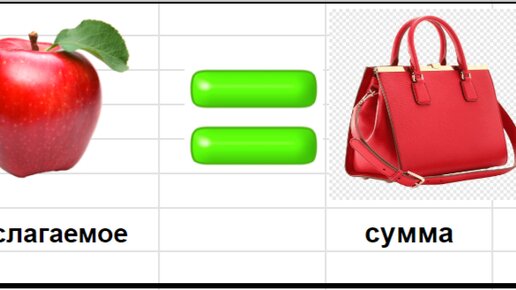 Правило: Слагаемые — это числа, единицы которых складываются. Сумма — это число, которое получается в результате сложения. Сложение двух чисел можно проверить вычитанием. Для этого вычитаем из суммы одно из слагаемых. Просто объясним и постараемся запомнить с помощью слов, которые помогут создать ассоциации с терминами. Слагаемое - сладкое яблоко 1 и сладкое яблоко 2 Сумма - сумка, в которую сложили сладкие яблоки Первое сладкое яблоко, куда то закатилось в сумке, чтобы его найти, надо из сумки вытащить (вычесть) второе сладкое яблоко...