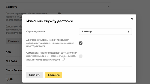 Сегодня столкнулся с темой, каким образом Маркет рассчитывает и показывает сроки и стоимость доставки в предложениях. Заставило меня этим заняться случайность. Вчера высунув язык добавлял вручную пункты выдачи в Санкт-Петербурге. А потом зашел проверить как они теперь красиво показываются. И вдруг увидел, что возле моего предложения уже горит гордая надпись - забрать из "столько-то" пунктов самовывоза. Полез проверять. Оказывается, в настройке доставки для региона СПБ, в закладке службы доставки, у Boxberry стояли 2 замечательные галочки Неожиданно...