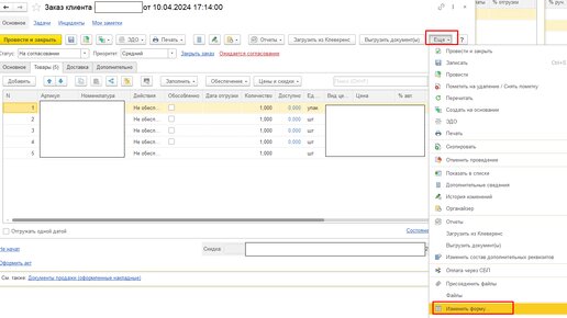 Почему у меня нет возможности изменить единицу измерения для товара в заказе клиента? 1С Комплексная автоматизация 2.5.