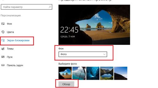 2. Перейдите в **Персонализация** → **Экран блокировки**