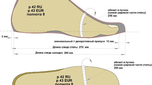 Здравствуйте! Ниже схема как рассчитывается длина стопы и чему будет равна длина следа колодки: Длина вкладной стельки не равна длине стопы или следа колодки! Мы с вами пользуемся так называемым ШТРИХМАССОВЫМ размерным рядом: Вся эта информация для того, чтобы вы были в курсе, что длина вкладной стельки не является точным измерением размера обуви. Длина вкладной стельки будет зависеть, от пакета толщин материалов в обуви, от самого материала стельки и ее конфигурации – формованная, вырубная, ортопедическая…...