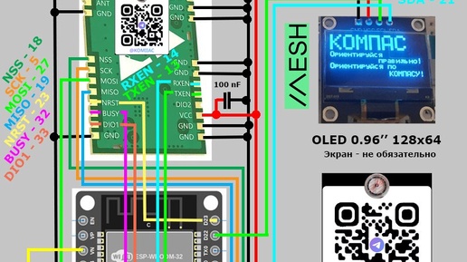 [KO] Схема Meshtastic📻 на базе контроллера ESP32 WROOM DEVKIT V1 и платы LoRa E22-900M30S. Если соберетесь идти по стопам Компаса🧭 - убедитесь, что распиновка точно такая же. Иначе могут потребоваться танцы с бубнами или поиск схем подключения. В поиск в интернет-магазине так и вбиваем: ESP32 WROOM DEVKIT V1 E22-900M30S OLED 0.96 128x64 Соединяем: E22-900M30S NSS - 18 SCK - 5 MOSI - 27 MISO - 19 NRST - 23 BUSY - 32 DIO1 - 33 RXEN - 14 TXEN - 13 OLED 0.96 128x64 SCK - 22 SDA - 21 Кнопка - от земли на VN...