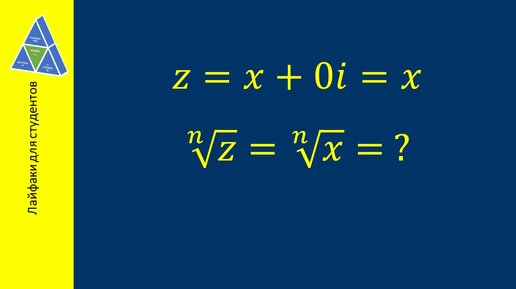 Математика онлайн. Доступно о сложном Начало серии статей об извлечении корней в комплексном случае Здравствуйте, уважаемые любители математики! Сейчас мы разберем, как связаны «школьный» материал об извлечении корней и те сведения, которые получаются на основе комплексного анализа. Будем извлекать, например, корень 5-й степени из числа 32. Очевидно, что будет 2. Теперь вспомним, что действительное число можно записать как комплексное с мнимой частью, равной нулю: x = x + 0i. Следовательно, к нему можно применить формулу извлечения корня для комплексных чисел (подробнее – здесь)...