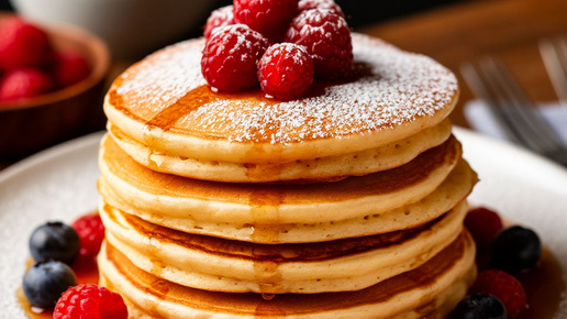 Панкейки – это пышные, нежные блинчики, родом из американской кухни, которые завоевали популярность по всему миру. Панкейки идеально подходят для завтрака, сочетаясь с сиропами, ягодами, фруктами и взбитыми сливками...
