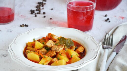 Тушеная картошка с мясом в сковороде. Из простого!