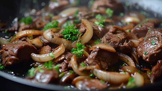 Жареная говяжья печень с луком на сковороде: рецепт