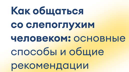 Слепоглухие люди очень интересные собеседники. Среди них много образованных, умных, талантливых людей. Общение и внешние связи играют в их жизни первостепенную роль. Поддерживая их, коммуницируя с ними, вы помогаете им чувствовать себя нужными. Благотворительный фонд «Со-единение» помогает людям с одновременным нарушением слуха и зрения по всей России. Специалисты фонда поделились советами и рекомендациями, как можно общаться со слепоглухими людьми. С чего начать Спокойно подойдите и возьмите человека за руку...