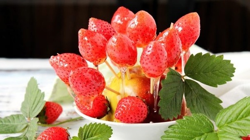 Клубнику для этого рецепта лучше выбирать не крупную и обязательно крепкую, иначе она съедет с зубочистки. Лимонный сок не позволит карамели засахариться. Если нет лимонного сока, добавьте в воду немного лимонной кислоты. При приготовлении карамели не мешайте сироп, он тут же начнет засахариваться. И следите, чтобы кристаллы со стенок не попали в карамель. АВТОР Лорик Трюм Ингредиенты: Клубника По вкусу Сахар 100 грамм Вода 50 мл Сок лимона 1 ч. ложка Клубнику переберите, вымойте и тщательно обсушите...