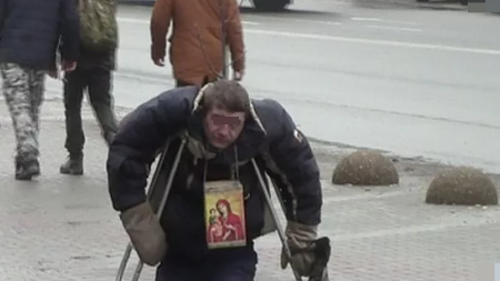 Дал "попрошайке" на костылях мелочь и случайно увидел его через полчаса. Оказалось, что он вовсе не инвалид.