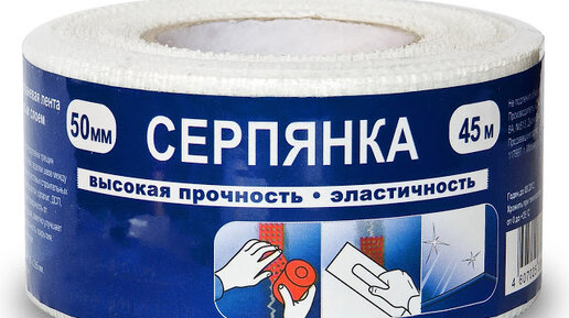 ГКЛ гипсокартонный лист – это материал, дышащий и вбирающий в себя влагу, подвержен к микро изменениям при разных температурах. Поэтому необходимо воизбежание появления трещин в местах соединения листов накладывать армирующую ленту в простонародье серпянку. Серпянку удобней использовать самоклеющуюся особенно для заделывания швов на потолках. Самоклеющаяся лента (серпянка) ширина 45 мм Размеры и технические характеристики сетки. Армирующая сетка (лента) серпянка сделана из стекловолокна с квадратными ячейками...