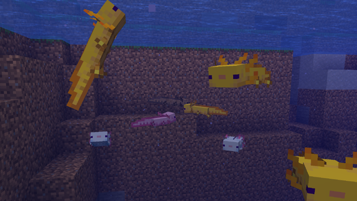 Аксолотли в Майнкрафт это - существа, которые появились на версии игры 1.17 в обновлении «Caves & Cliffs». Данные водные мобы, по-другому, амфибии обитают в подземных водоемах. Они появились благодаря существам из Мексики, которыми вдохновились разработчики. Теперь, в Minecraft появились виртуальные аналоги! "Леусистик - светло-розовый с розовыми плавниками является самым распространённым аксолотлем в игре Майнкрафт. Дикий - коричневый с тёмными пятнами. Золотой - жёлтый с оранжевыми плавниками. Циан - голубой с розовыми плавниками...