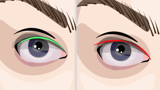 Подводка меняет форму глаз лучше скальпеля. Схемы для разных форм, показываю где и как красить