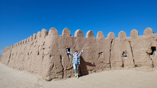 Так случилось у нас. Открылась нам совсем другая Хива под ярким голубым небом! Этот день мы, как было задумано провели в Крепости Ичан -Кала. Позавтракав в гостевом доме, сразу и поехали туда. Опять же на такси Яндекса всего за 10000 сум на троих. Это где-то 70 рублей всего. Кстати -на завтраке мы увидели кто живёт у нас в гостевом доме. Это всё иностранцы. Приятно было немного поболтать с компанией напротив. И снова сразу вспомнились поездки в страны, где живут такие люди🩷. На улице было яркое солнце, но прохладно ...