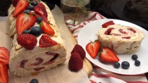 Меренговый рулет с кремом и ягодами, вкусно и просто