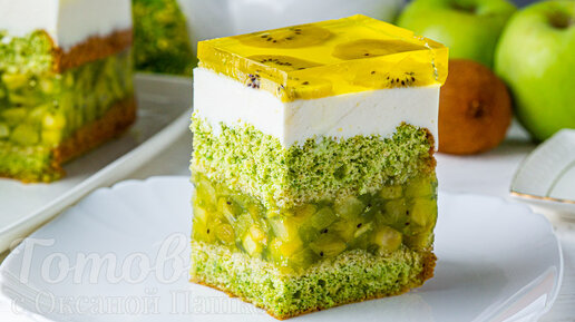 Потрясающе красивый и вкусный торт с киви «Весна» подойдет для любого торжества. Этот торт поражает насыщенным зеленым цветом коржей и начинки. А его вкус очень сбалансированный и ароматный. Зеленый шпинатный бисквит, сочная и ароматная начинка из яблок и киви и нежный творожный слой отлично гармонируют между собой.