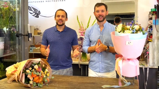 Друзья, приветствуем! Сегодня мы еще раз поговорим об упаковке, а именно о круглой упаковке букета. В этом видео мы проведем эксперимент: возьмем два букета в односторонней упаковке: корейской пленке и тишью. Мы попробуем переупаковать эти односторонние букеты: сделать круглую упаковку этих букетов, двумя способами. Эксперимент заключается в том, что букеты сделаны односторонними, и они могут в круглой упаковке смотреться немного неправильно. Смотрите в этом...
