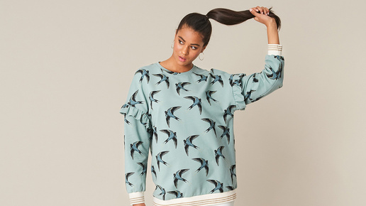 Свободный и не стесняющий движений с гламурным декором свитшот или уютный и очаровательный худи с капюшоном в спортивном стиле — что выбрать? С нашей пошаговой инструкцией вы легко сошьёте обе модели! Наша выкройка толстовки простая и универсальная! Отсутствие сложных деталей и подробное описание с иллюстрациями каждого шага гарантируют, что пошив этой модели будет по силам даже начинающим мастерицам. Просторный свитшот сшит из трикотажного полотна с принтом в виде ласточек. Вдоль заниженных пройм...