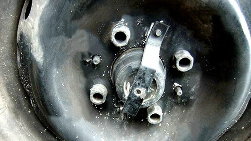 Сколько мной было потеряно колпаков... Особенно когда опаздываешь и мчишься по колдо******. Пока не сделал, так как показано на фото. Берем 3х миллиметровую пластинку и делаем из неё П-образную скобу. Сверлим отверстия, пару по краям Ø10мм и одно в центре. В отверстии, которое в центре нарезаем резьбу под болт, который будете использовать...