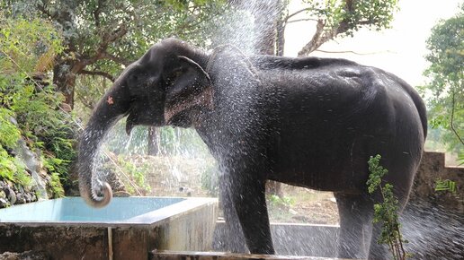 Дикий слон удивил посетителей отеля решив искупаться в бассейне